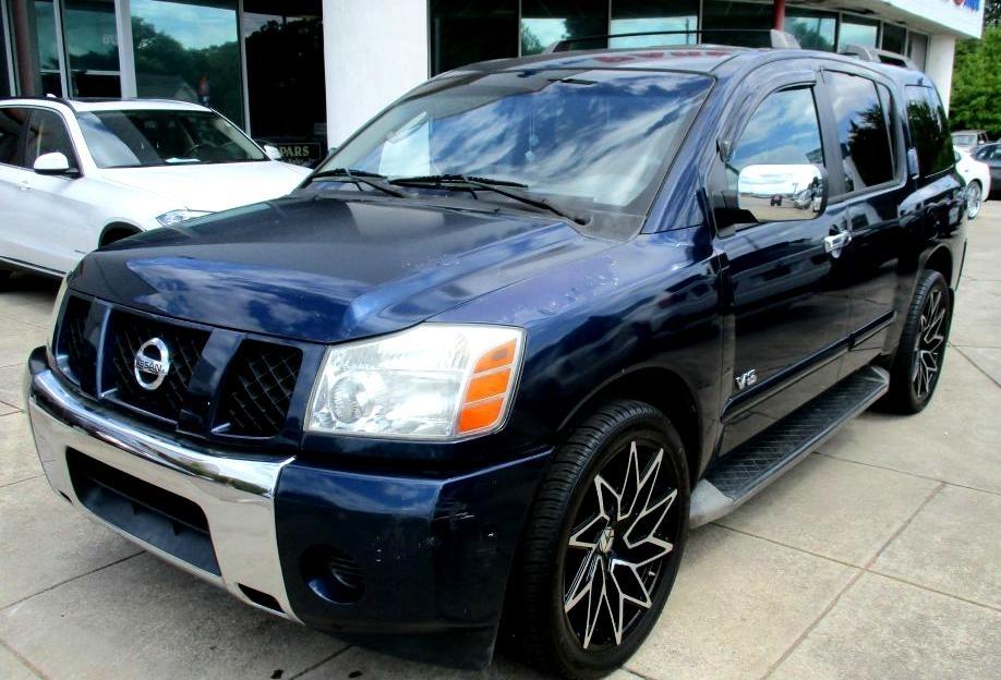 Cruise around town in style with this sleek and reliable 2006 Nissan Armada in a stunning shade of blue. This spacious SUV is perfect for families on-the-go, with plenty of room for all your adventures. With its powerful engine and smooth ride, you'll feel like you're floating on air as you navigate through city streets or hit the open road.
